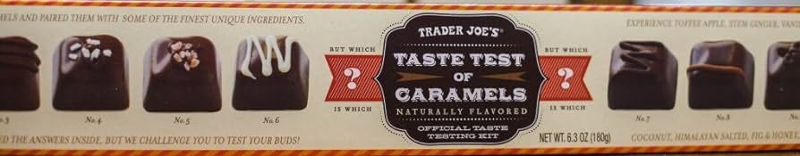 I am overwhelmed by the options and holiday spirit of this store. After a brief and sensory-overloaded search, I come across what might be the best item in the entire store. It is a holiday sampler of chocolate caramels. I fall immediately in love as it combines my love of surprise and intrigue with my love of Trader Joe's chocolate caramels. The flavors range from the whimsical (Strawberry Black Pepper) to the patriotic (maple, in case you've forgotten that I'm Canadian) to the irresistible (a known whore for butterscotch). It is $5.99 and wonder how I'll bear to part with it when the clock strikes 11. I make my transaction and return to work. It's in my arms, but I already ache as if it's gone.*
