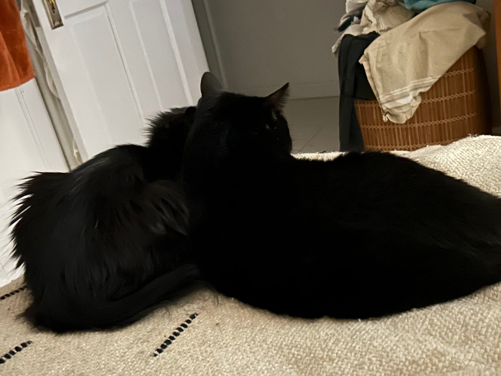 This cuddle puddle was initiated by Curfew. Ignore the laundry. It’s been handled.